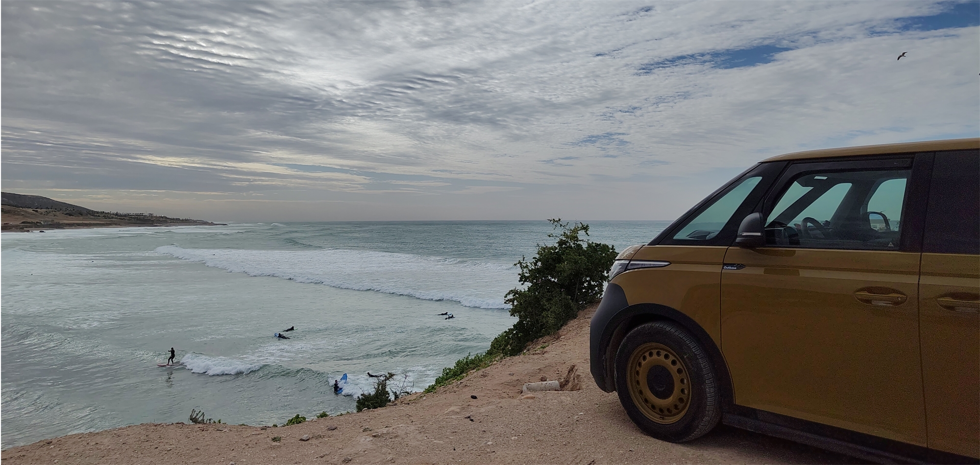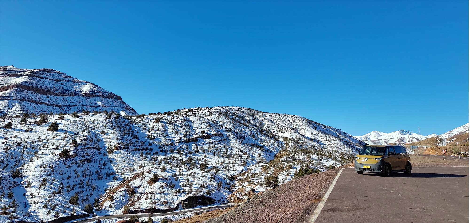 In de bergen kwam de ID.Buzz pas echt tot zijn recht. Hij ging stil, krachtig en verrassend snel omhoog, om daarna weer bij te laden op de weg naar beneden. “Je moet wel opletten, want kinderen horen je niet aankomen.” De reacties waren hartverwarmend. Mensen riepen “spaceship”, staken hun duim op en wilden op de foto. Soms werd er een familielid gebeld dat een beetje Engels sprak en werd hij bedankt dat hij helemaal naar hun dorp was gekomen. Een paar keer nam Tim iemand een stukje mee. “Dat stille rijden vonden ze zó raar! Supervriendelijke mensen.”